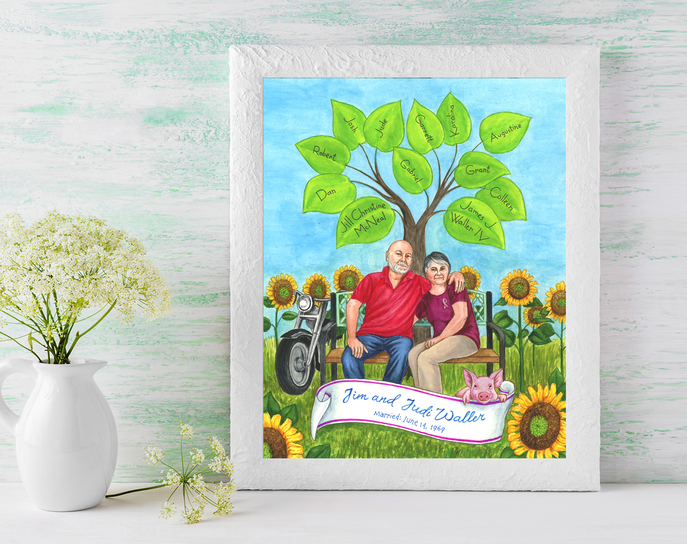 A Joyful Golden Anniversary Surprise for In-Laws: Bespoke Family Tree Art Selecting a 50th anniversary gift for your in-laws is a heartfelt way to honor the couple who raised your beloved spouse, and a Bespoke Family Tree Painting delivers a...