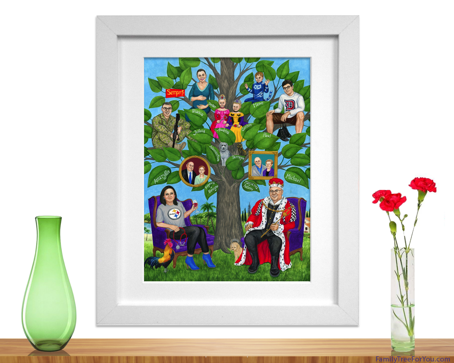 A Personalized Family Tree Painting Fit for a King As an artist, I’m always ready for surprises, and this Custom Family Tree Painting, commissioned as a unique gift for a husband, delivered one with flair. My client’s request to portray...