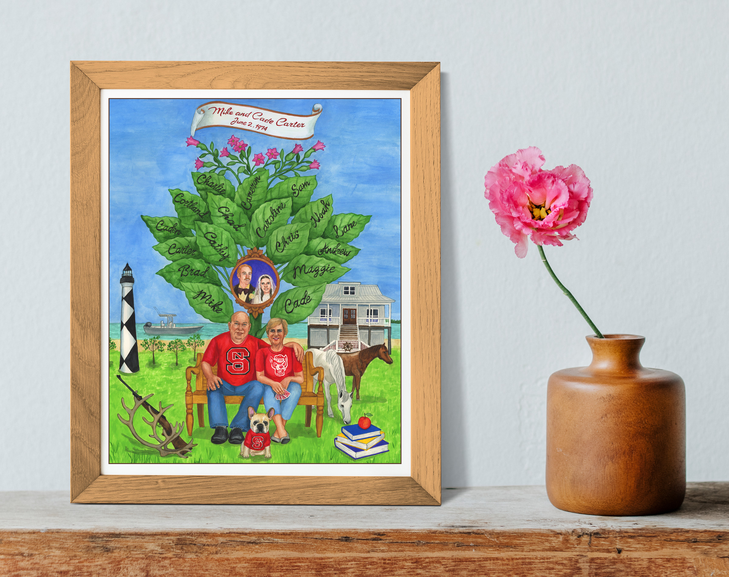 Personalized Family Tree Painting for a Family Business While most of my custom family tree paintings are crafted for birthdays or anniversaries, some capture truly unique milestones, like this vibrant artwork created to celebrate a family business’s relocation. Commissioned by...